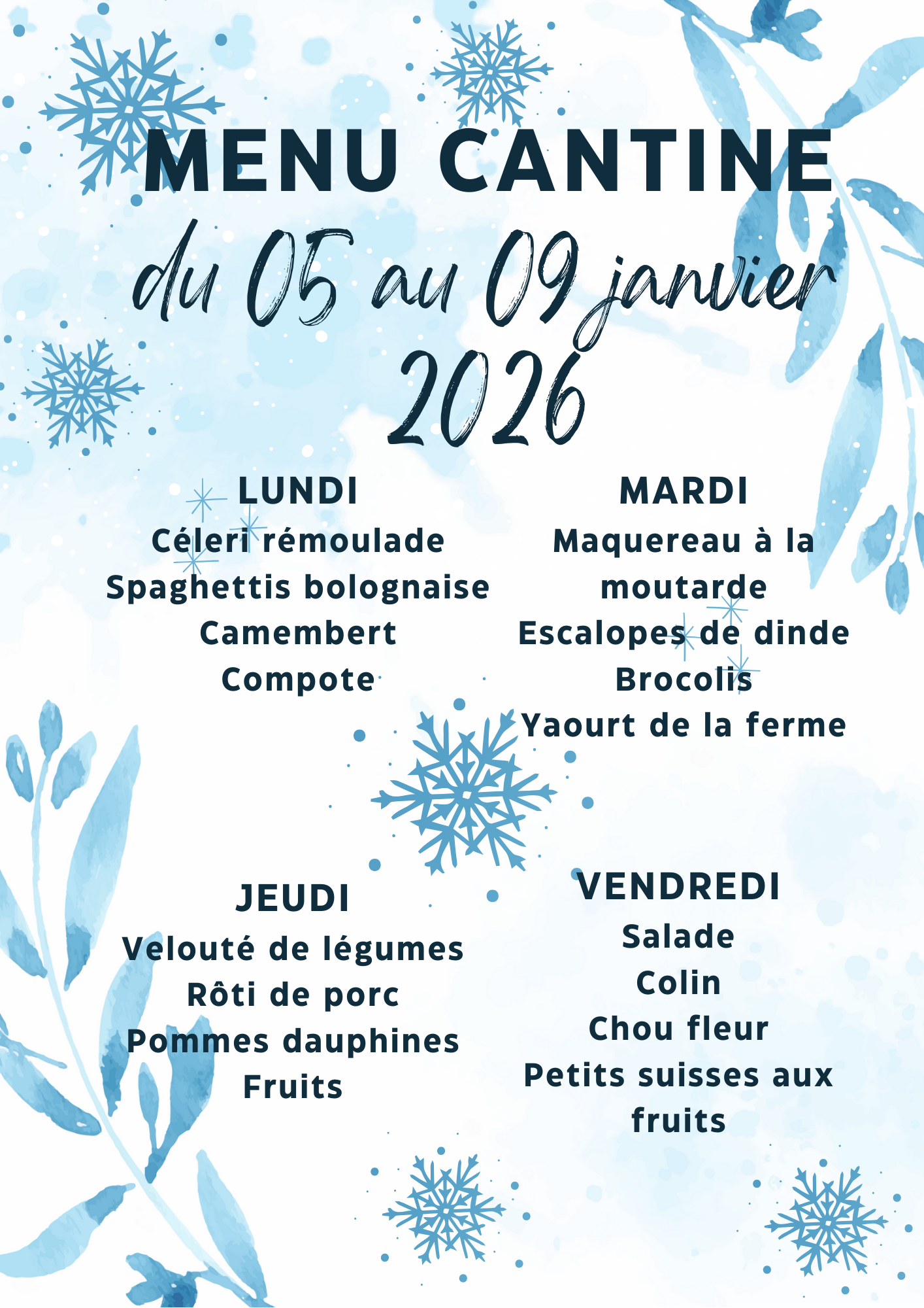 Menu cantine